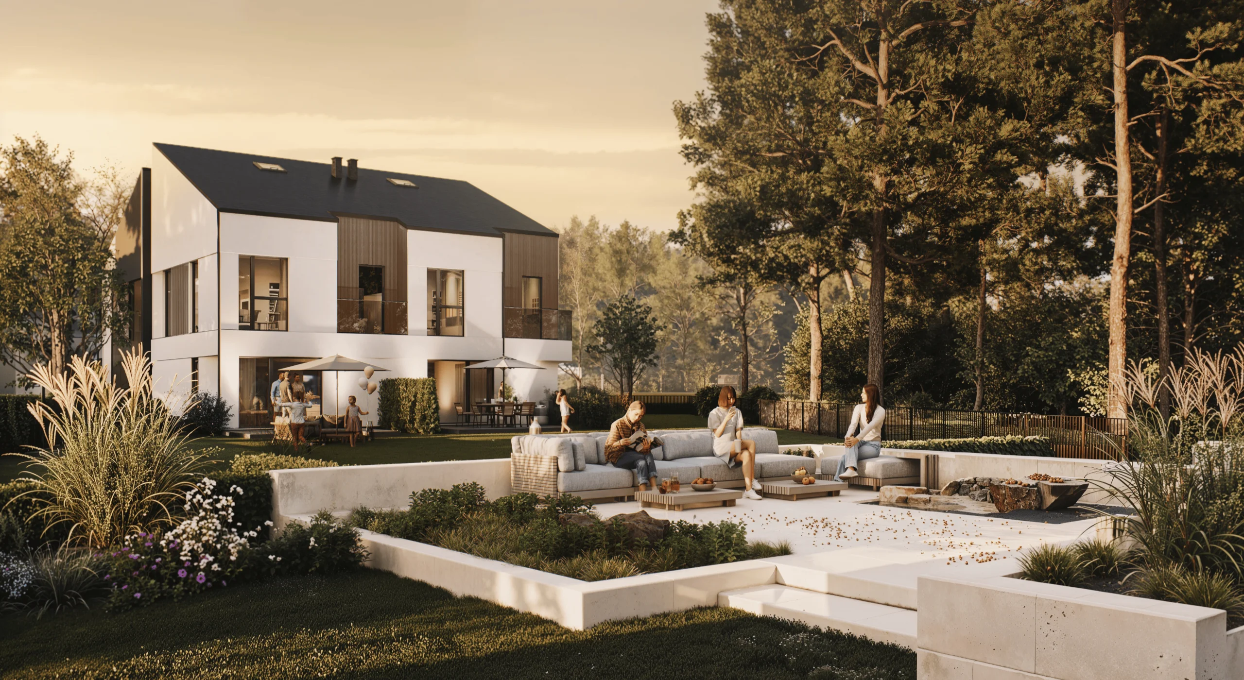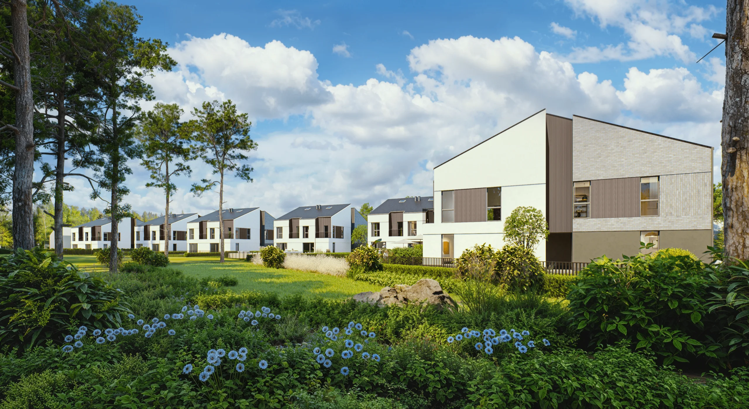 Osiedle KAMPINO PARK to zaledwie 7 budynków, a w każdym z nich znajdą się po 4 dwupoziomowe mieszkania o powierzchni 68 m² i 80 m². Do mieszkań przynależeć będą po 2 miejsca postojowe na samochody. Prywatne ogrody każdego z mieszkań to zapowiedź niezwykłego komfortu i luksusowego wypoczynku wśród zieleni. Dostęp dla mieszkańców osiedla do prywatnej części lasu czyni nasze osiedle jeszcze bardziej wyjątkowym.
